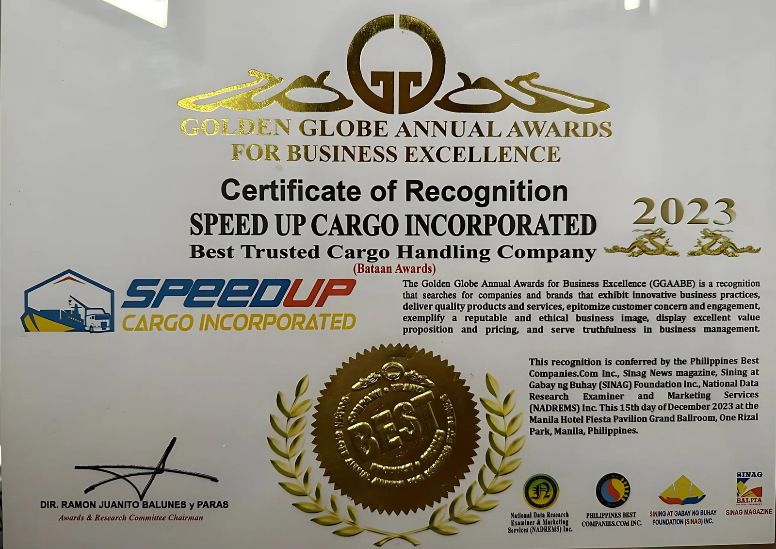 Golden Globes Award In recognition as the Best Trusted Cargo Handling Company